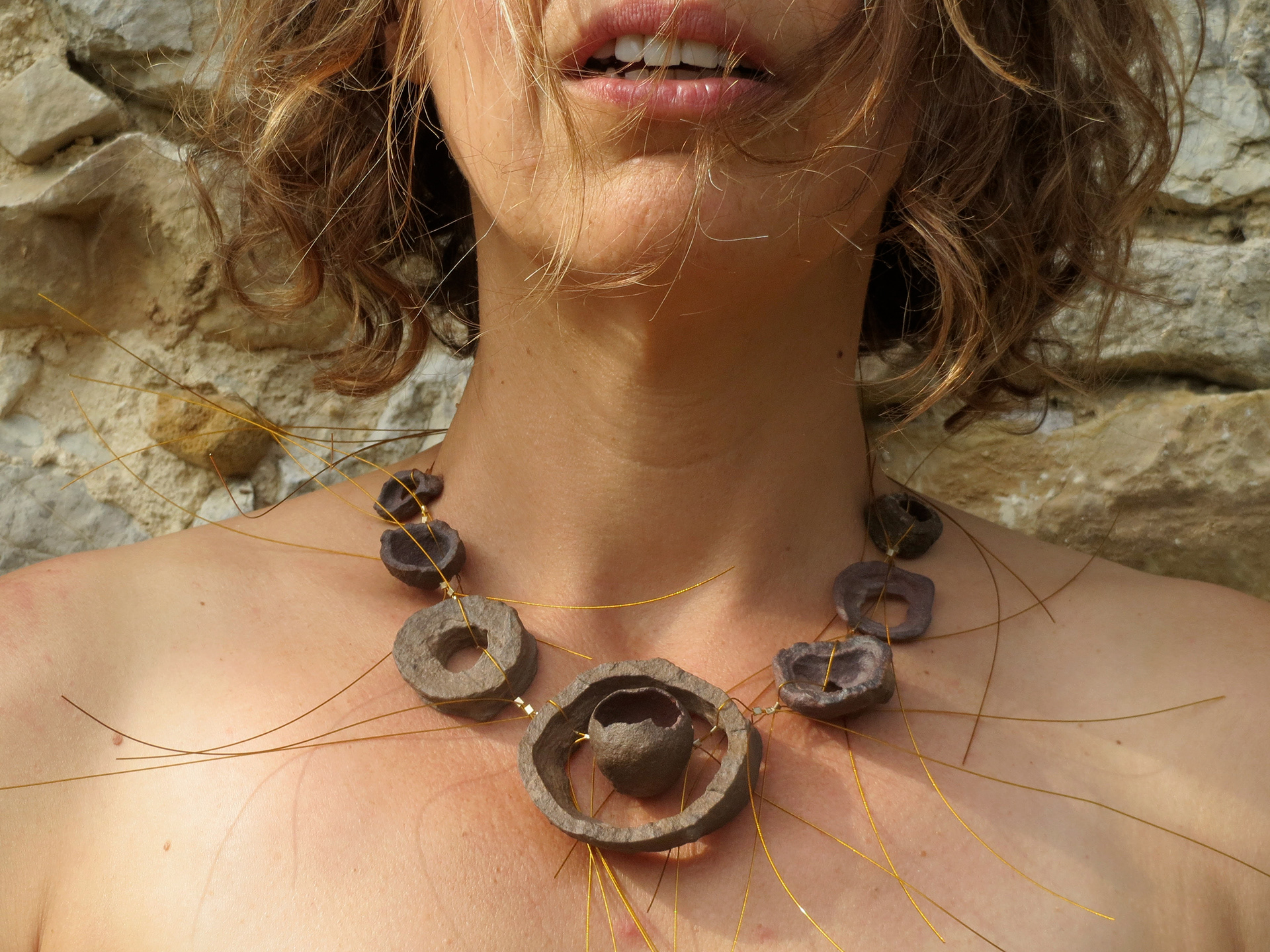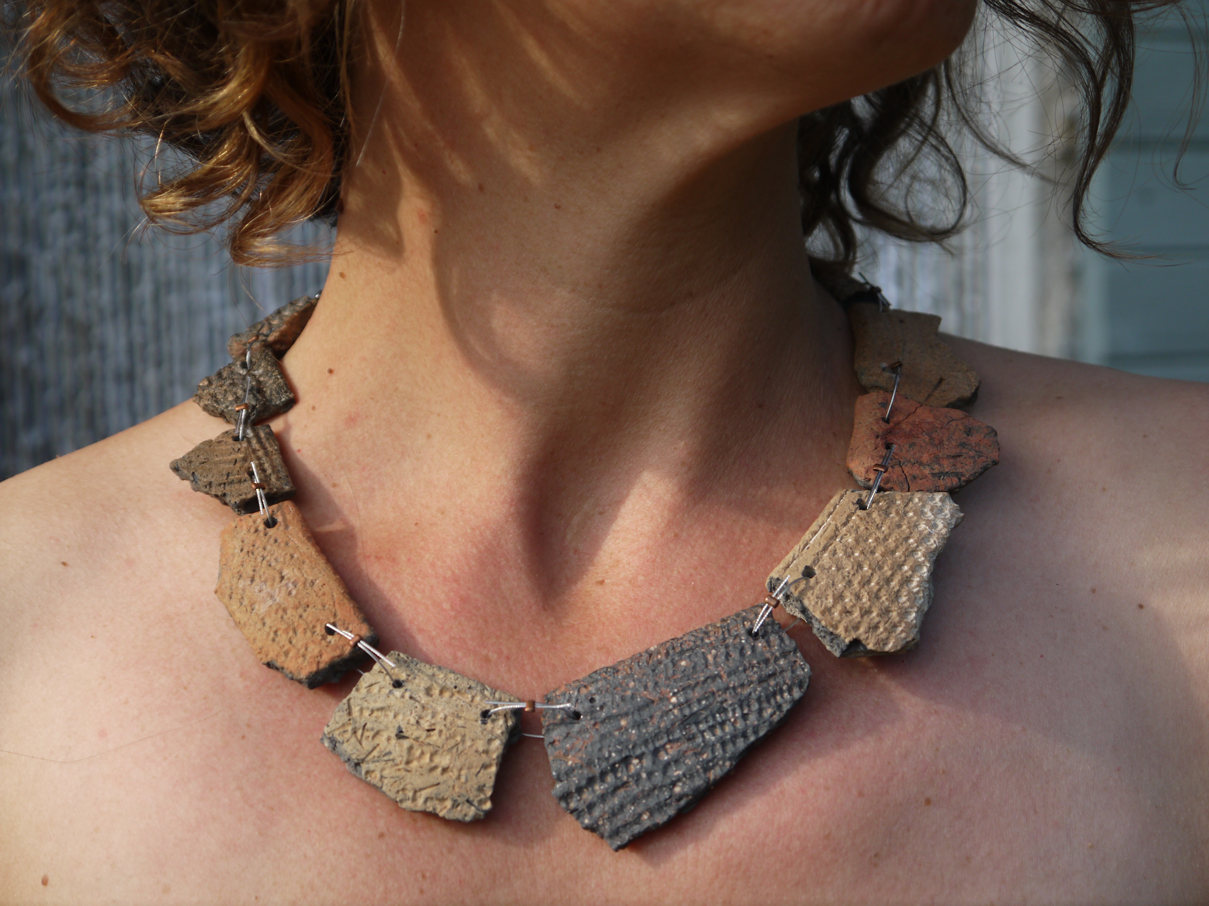 Tessons de Poteries néolithiques. bords de pots. Ahnet. Algérie . Crinelle d'inox. Perles de laiton